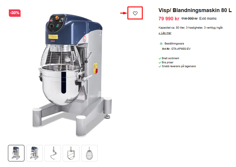 4. Klicka på hjärtat för de artiklar du önskar offert på.