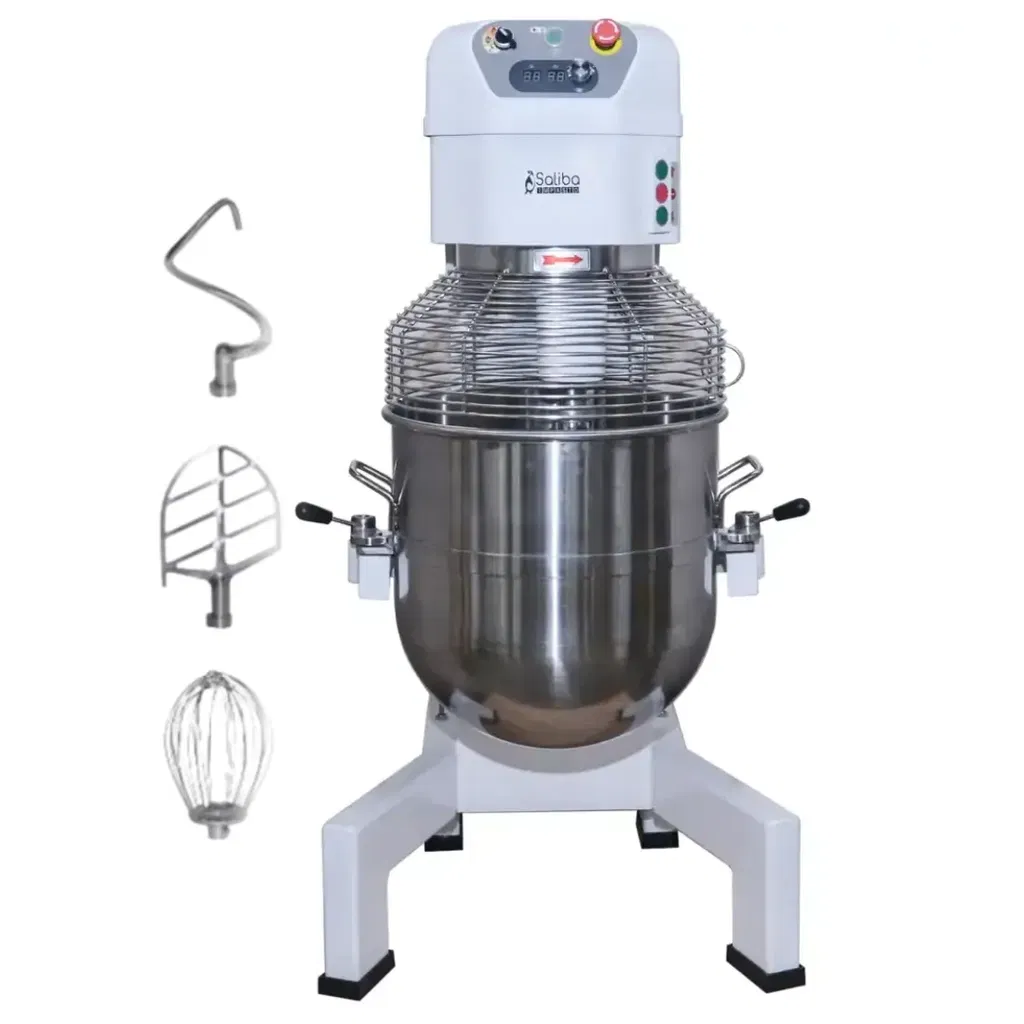 Visp- & blandningsmaskin inkl. kittel med kapacitet på ca. 80 liter. Tre verktyg medföljer: Ballongvisp, krok, spade.