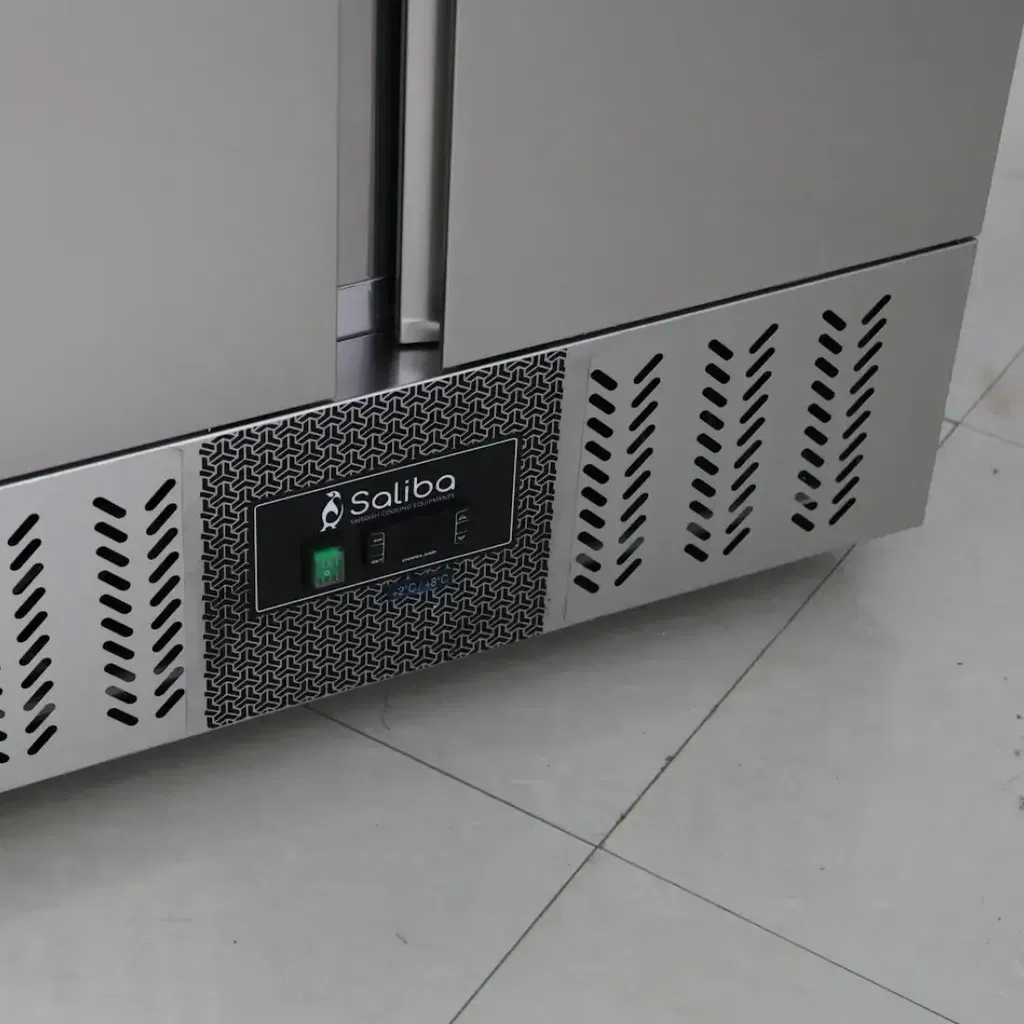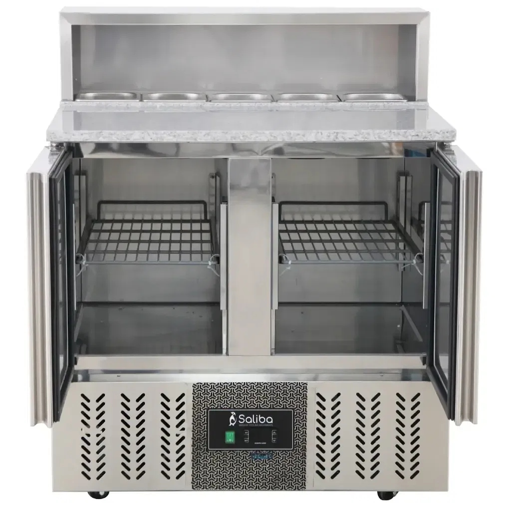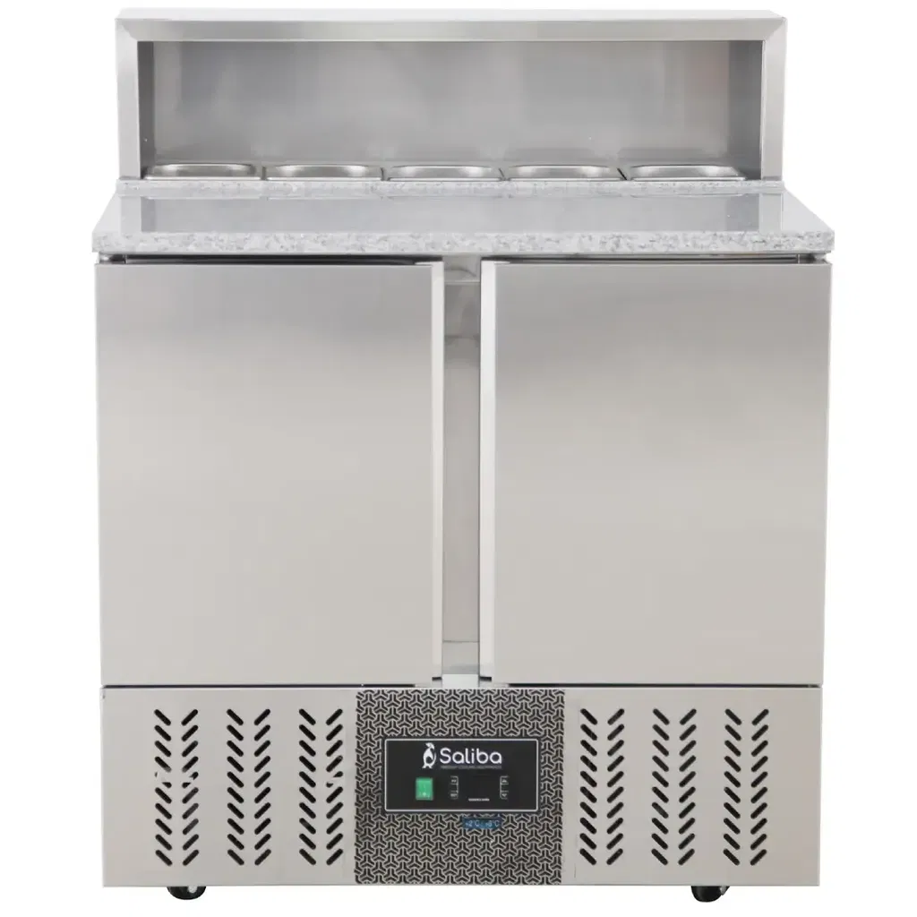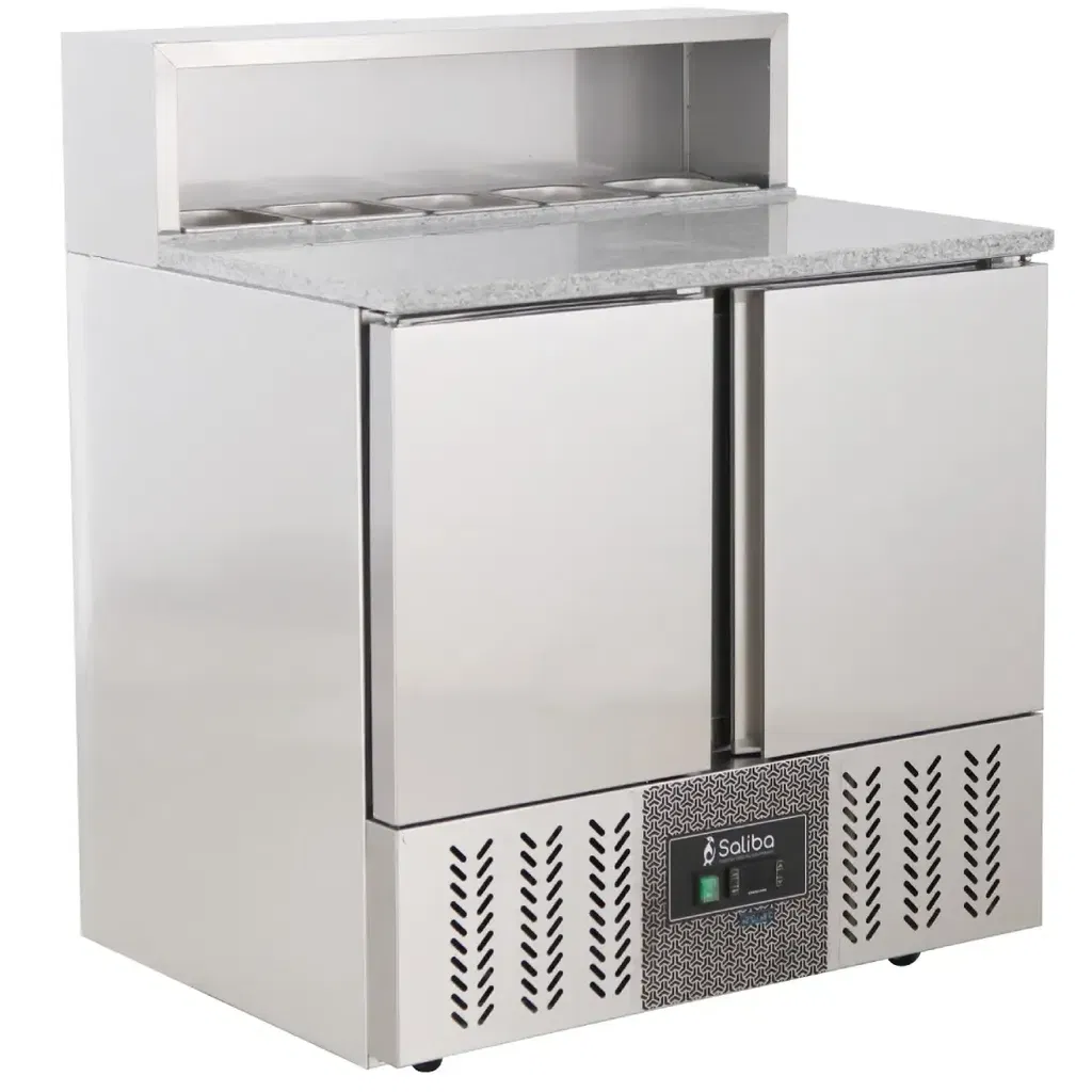Kallskänksbänk med 2 dörrar, granittopp, kapacitet på ca. 285 liter.