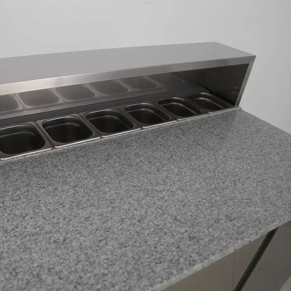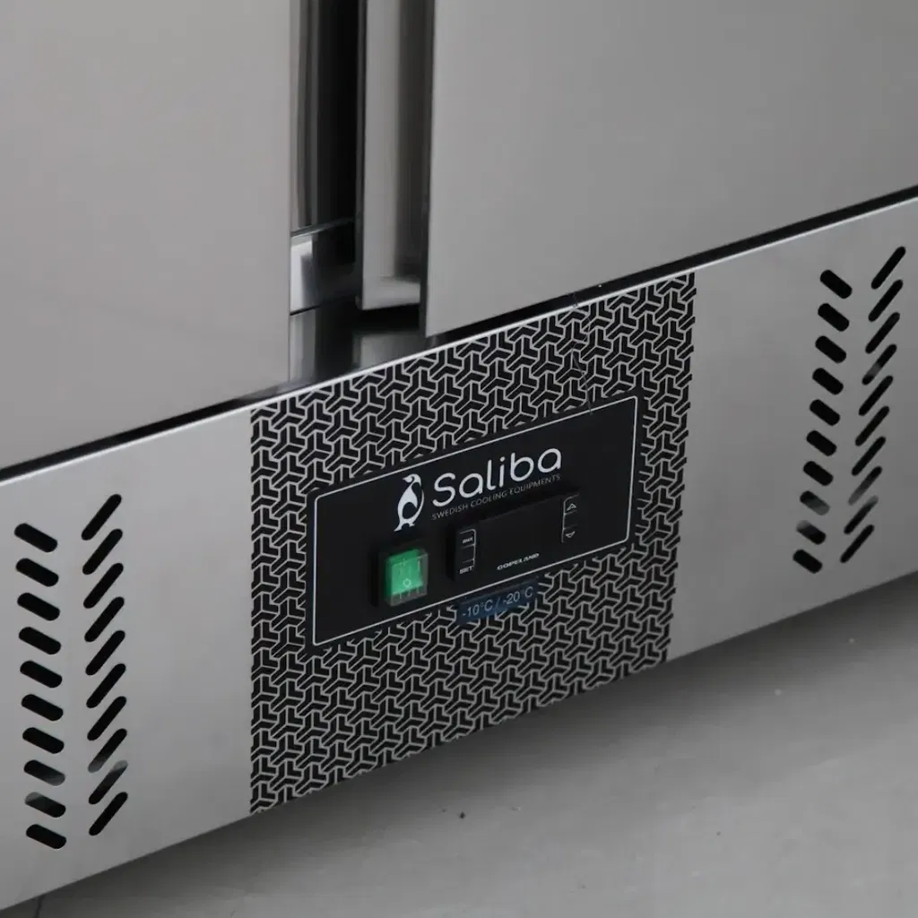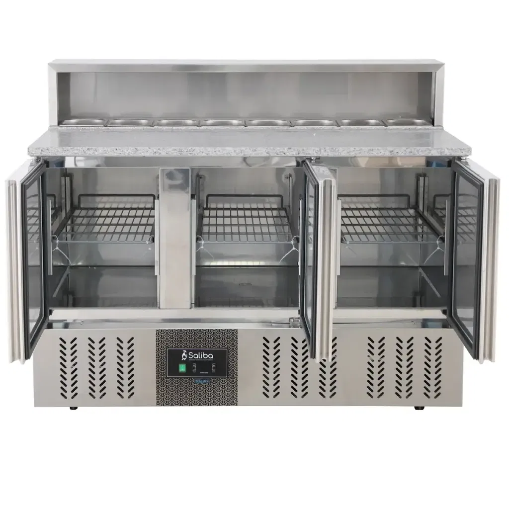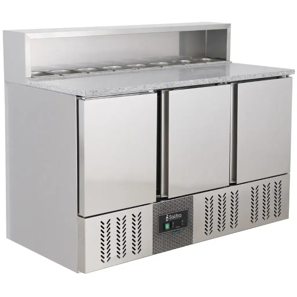 Kallskänksbänk med 3 dörrar, granittopp, kapacitet på ca. 400 liter.