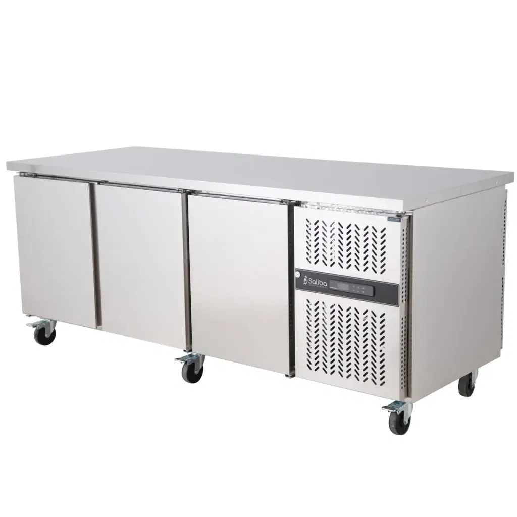 Dubblesidig kylbänk med 6 dörrar (3 dörrar på fram- och baksidan).