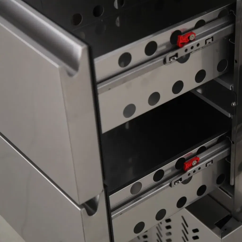 Kylbänk med solid dörr och två draglådor.