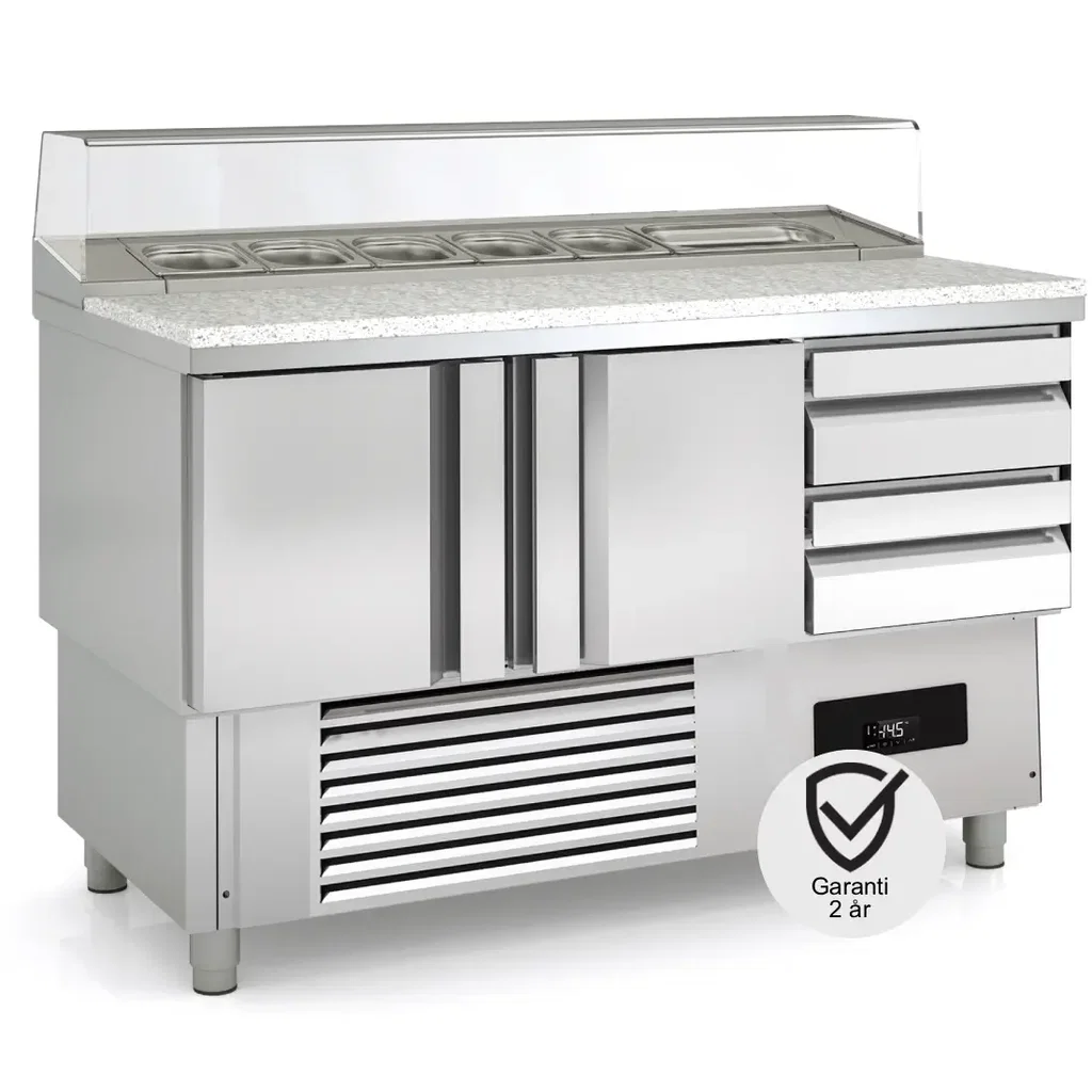 Saladette med 2 dörrar och glastopp.. Tillverkad helt i rostfritt AISI304-stål