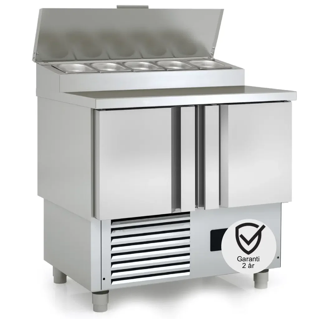 Saladette 5xGN1/4 med 2 dörrar tillverkad helt i rostfritt AISI304-stål
