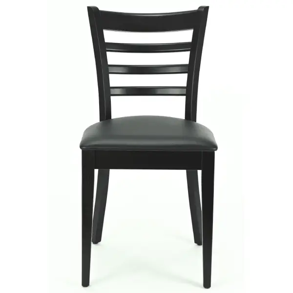 Populär restaurangstol i bistrostil. Bekväm med stoppad sits i svart konstläder. Stol James R. Wenge tillverkas i bokträ och klarar intensiv använding. Producerad i främsta kvalité och för offentlig miljö.